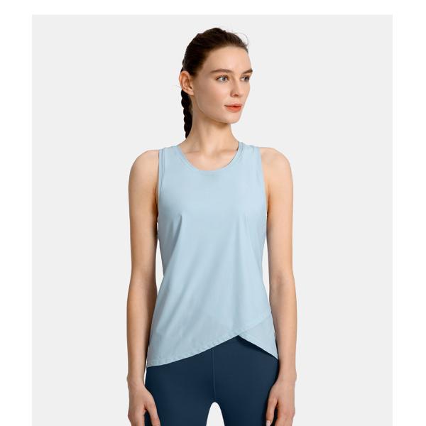Fashion ladies sleeveless round neck slit tank top for running fitness sports wear